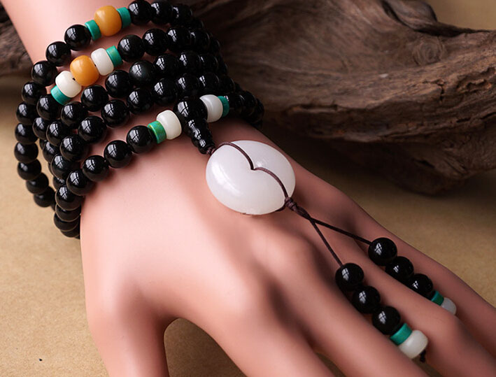 Material: Rainbow Obsidian Beads, Natural White Jade Bodhi Root,Natural Weathered Bodhi Root,Turquoise Spacer,Afghan Jade Lucky Buckle