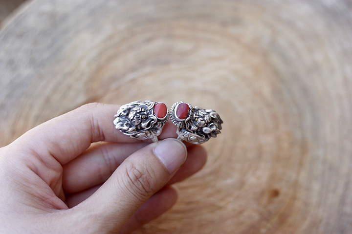 Nepal Handmade 925 Silver Red Coral Dragon Ring