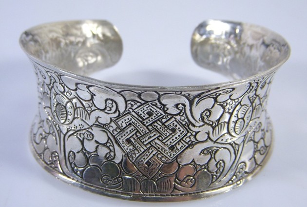 Handmade Tibetan Endless Knot Sterling Silver Bracelet.