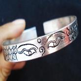 This bracelet was handmade in Nepal from nickle silver.