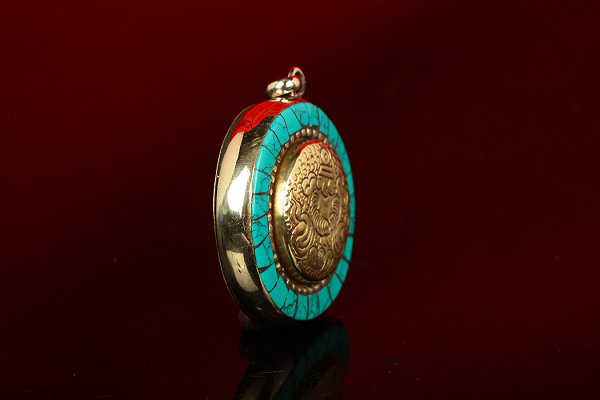 Nepal Handmade Turquoise Eight Auspicious Symbols Gaudencio Box Pendant