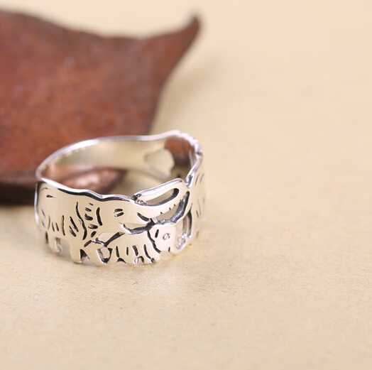 Lucky Carving Baby Elephants Hollow 925 Silver Ring